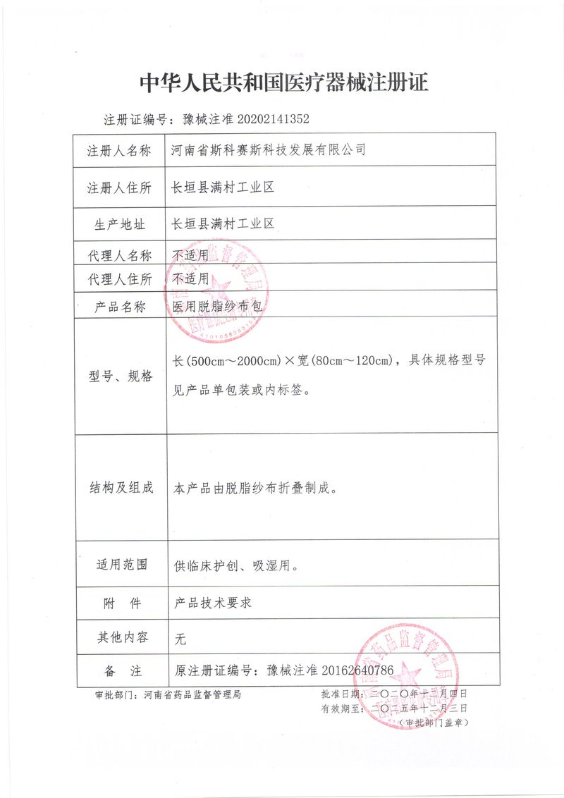 河南省斯科賽斯科技發(fā)展有限公司創(chuàng)建于 2011 年,位于“中國(guó)醫(yī)療耗材之都”- 河南省長(zhǎng)垣縣,西臨 308 省道,南靠新菏鐵路,北依長(zhǎng)濟(jì)高速,交通便捷,經(jīng)濟(jì)發(fā)達(dá),環(huán)境優(yōu)美。斯科賽斯積極進(jìn)入醫(yī)療健康和服務(wù)領(lǐng)域,秉承為用戶創(chuàng)造價(jià)值的理念,專注于醫(yī)用耗材解決方案的研發(fā)和運(yùn)營(yíng),并為用戶提供完善的產(chǎn)品解決方案;  斯科賽斯主要生產(chǎn)醫(yī)用麻醉系列、醫(yī)用高分子系列、醫(yī)用敷料包系列、醫(yī)用無(wú)紡布系列、醫(yī)用防護(hù)系列、醫(yī)用脫脂棉系列、生物材料制品類等七大類、100 多個(gè)品種、400 多個(gè)規(guī)格的產(chǎn)品。公司占地面積約 30000 平方米,建筑面積20000 平方米,擁有 10 萬(wàn)級(jí)的凈化車(chē)間總面積 10000 平方米。擁有國(guó)際先進(jìn)水平的生產(chǎn)設(shè)備和檢測(cè)儀器,技術(shù)裝備精良,檢測(cè)手段完善,為醫(yī)療行業(yè)的不斷發(fā)展進(jìn)步提供保障。公司順利通過(guò) ISO9001、ISO13485 質(zhì)量管理體系認(rèn)證?! ∷箍瀑愃箞?jiān)持研發(fā)高科技新產(chǎn)品,力爭(zhēng)在醫(yī)療器械關(guān)鍵領(lǐng)域取得技術(shù)和研發(fā)的重大突破;立足國(guó)內(nèi)和國(guó)際兩個(gè)市場(chǎng),逐步實(shí)現(xiàn)管理理念、經(jīng)營(yíng)機(jī)制、人力資源、技術(shù)、產(chǎn)品、市場(chǎng)等全方位對(duì)接,提高企業(yè)的核心競(jìng)爭(zhēng)力;過(guò)去的歲月里,斯科賽斯砥礪前行,誠(chéng)信務(wù)實(shí),銳意進(jìn)取,不斷創(chuàng)新,用自己的睿智和辛勞,以富有責(zé)任感的使命,在探索中追求,在追求中超越,致力于成為值得信賴的醫(yī)療用品生產(chǎn)企業(yè)!在未來(lái)的日子里,斯科賽斯將一如既往豪情滿懷,信心百倍,攜手并肩,執(zhí)著追求,向更高的的目標(biāo)前進(jìn),鑄造新的輝煌!